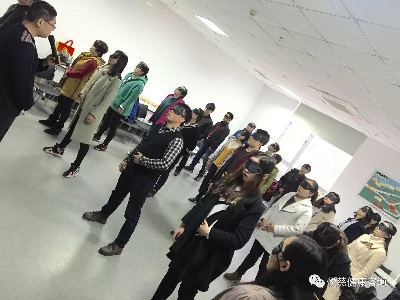 刘老师带领大家进入呼吸放松,吸~~吸,呼~呼~哈~哈。